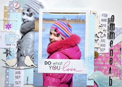 В этой работе у меня тоже чипборд challenge-km-shop - плашки от чипборда снежинки, набор воробушков маленький.